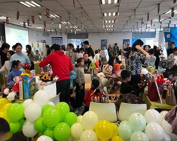 活动场地共设立了17个摊位,放满了孩子们心爱的玩具、学习用品等。