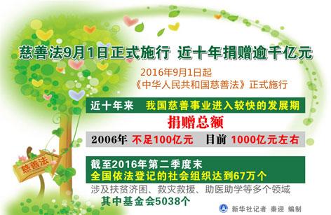 9月1日起,慈善法正式施行,慈善事业的健康发展将受到法律规范和保障。