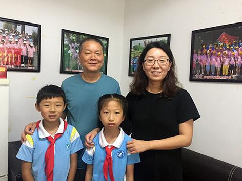 汤子祺和袁亦舟同学与基金会秘书长楼时伟、办公室主任张嘉桐合影