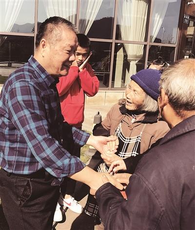 基金会秘书长楼时伟在开化县慰问孤儿,征求监护人对资助工作的意见