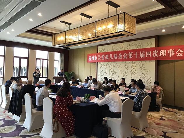 2019年4月24日,杭州市关爱孤儿基金会召开第十届四次理事会。杭州日报、华日实业投资有限公司、万达旅游集团有限公司、众安氡温泉度假酒店、杭州中青航空物流有限公司、杭州大厦有限公司、康恩贝集团有限公司、杭州民生药业有限公司、杭州水泥集团有限公司、四季青服装集团有限公司、杭州汽车东站小商品市场、浙江康莱特药业集团、浙江天皇药业有限公司、浙江白象电器成套设备有限公司、杭州湖光饭店、杭州汽轮动力集团、杭州电视台少儿频等十八家理事单位的领导以及杭州市民政局儿童福利中心潘琼翼等参加了会议。