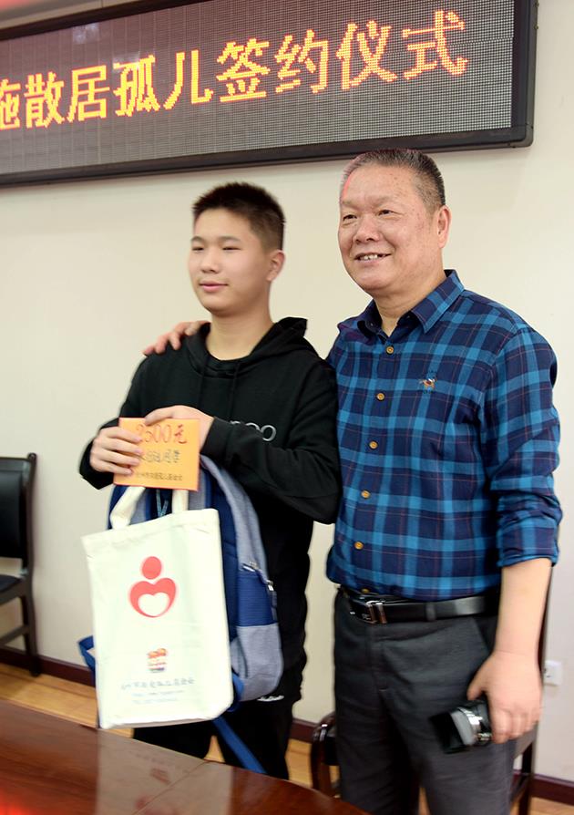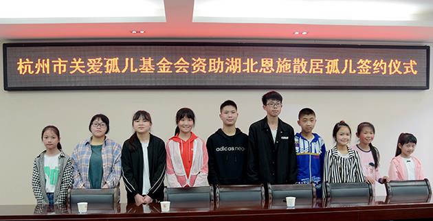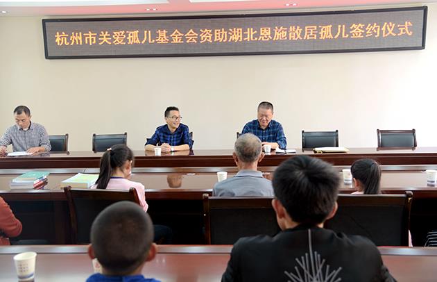 5月19日,杭州市关爱孤儿基金会资助湖北恩施散居孤儿签约仪式在恩施市民政局会议中心举行,秘书长楼时伟代表本会与10名受助散居孤儿签订了为期两年的资助协议,并现场发放了2019年助学款每人2500元。