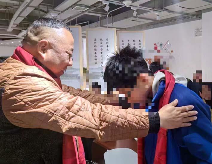 浙江省济宁商会会长张文桥给孩子送上温暖的围巾